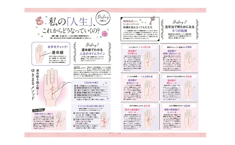 本来のあなたの姿は左手、今のあなたの姿は右手の手相から運勢を読み解くことで、自分と向き合うきっかけにもなります。手相の読み方のほか、「運命線」「金運線」「健康線」「結婚線」など多くの線の種類と役割を解説します。手相術を学び、より人生を輝かせてください!