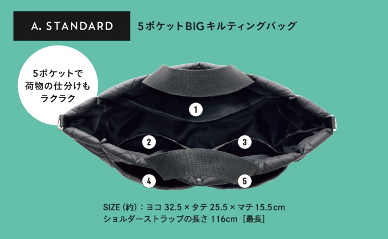 A. STANDARD 使いやすさとシルエットにこだわった 5ポケットBIGキルティングバッグBOOK