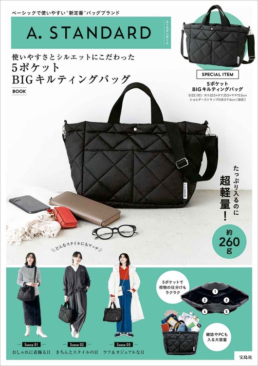 宝島社のオリジナルブランド「A. STANDARD(エー スタンダード)」から、軽くて使いやすいキルティングバッグが登場!