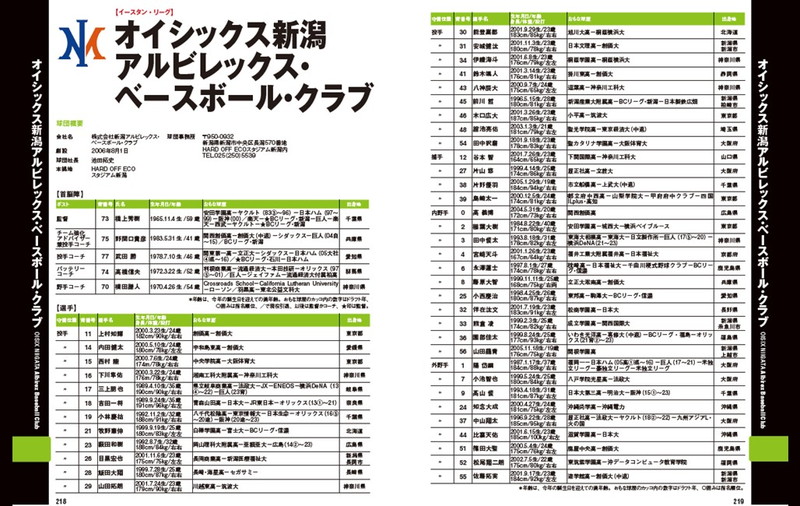 また今シーズンから新規参加する『オイシックス新潟アルビレックス・ベースボール・クラブ』と『くふうハヤテベンチャーズ静岡』の選手&コーチ一覧も掲載。