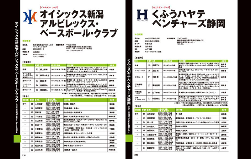 また今シーズンから新規参加する『オイシックス新潟アルビレックス・ベースボール・クラブ』と『くふうハヤテベンチャーズ静岡』の選手&コーチ一覧も掲載しています。