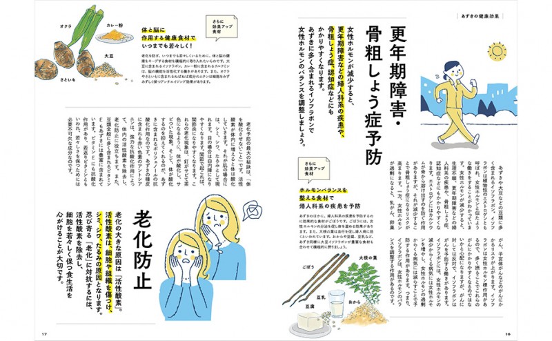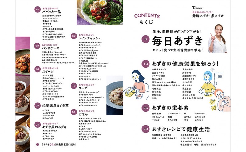 生活習慣病改善、メタボリック症候群、老化予防、更年期障害などに効くスーパーフード「あずき」を使った健康レシピ本です。あずきは、赤ワインの1.5~2倍のポリフェノールを含んでいて、脂質異常、高血糖、高血圧いずれにも良い効果をもたらすことが実証されています。本誌では煮あずき、発酵あずき、あずき水で作る、毎日飽きずに続けられる簡単なレシピを紹介します。