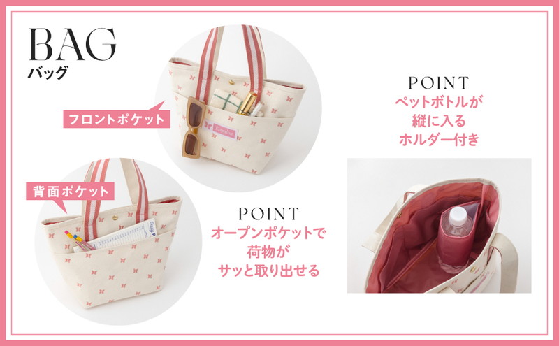 ランチトートは500mLペットボトルのほか、お出かけに必要なものが入る大容量。