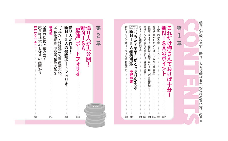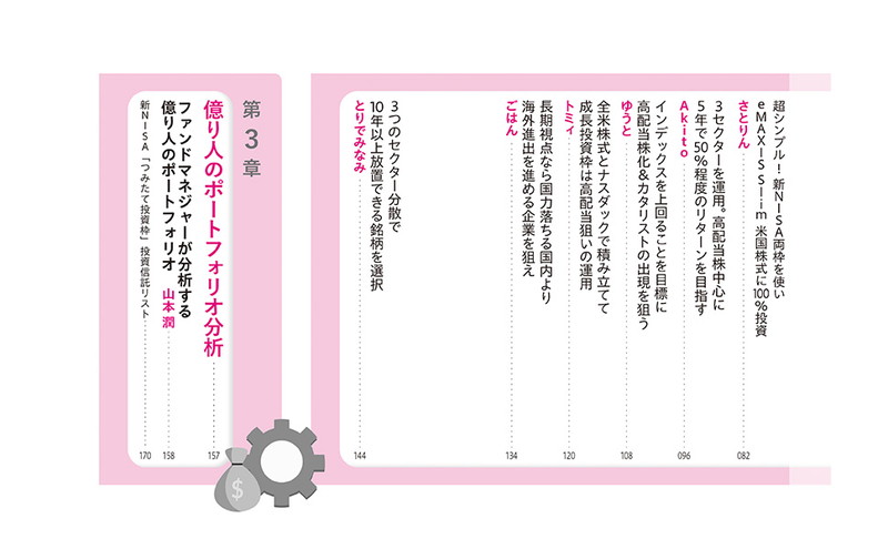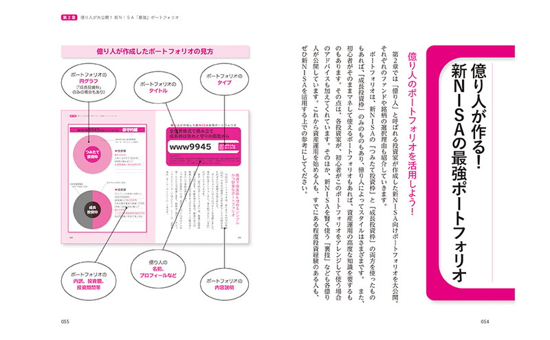 本書は新NISAを中心に構成。制度の内容を一から紹介するとともに、枠内で買うべきおすすめの株や投資信託を、運用で成果を出している「億り人」に選んでもらい、ポートフォリオを組んでもらいます。