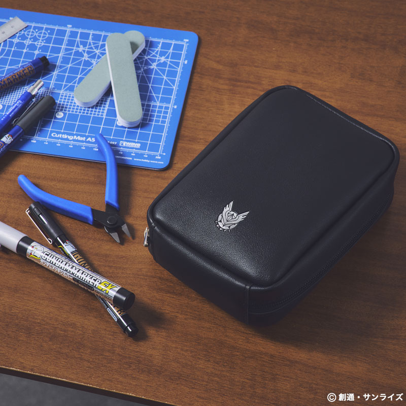 4つのポケット+3つのペンホルダーが付いた機能性もバツグンな逸品。ガジェットケースとして、ガンプラ製作用の道具ポーチにもピッタリ。