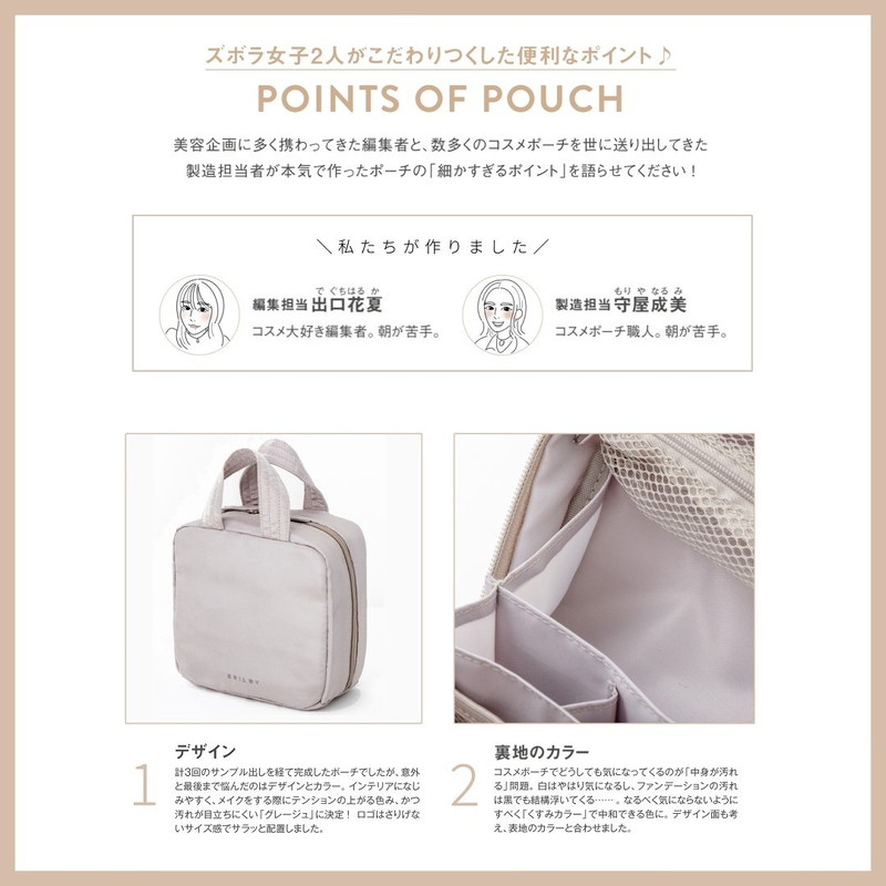 どんどんものが増えていき、かさばっていく「コスメポーチあるある」を考慮し、なるべく柔らかい生地に。