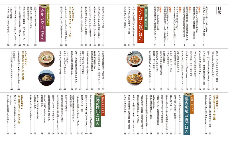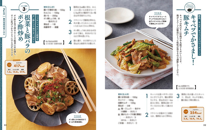 今回は「筋肉を元気にするタンパク質食材」「腸内環境を改善する発酵食材」「骨を丈夫にするカルシウム食材」など健康目的別に構成。さらに、前作よりも手抜きレベルを上げてレシピを厳選。缶詰レシピ、冷凍食品アレンジ、包丁いらずなど、手抜き方法がひと目でわかるアイコンがついてます。