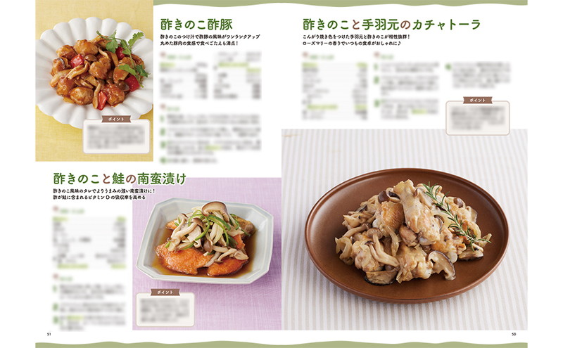 酢きのこと鶏むね肉のレモン蒸し、酢きのこ酢豚、酢きのこと厚揚げのおろし煮、酢きのこのチーズトースト、酢きのこのサンラータンスープ etc.