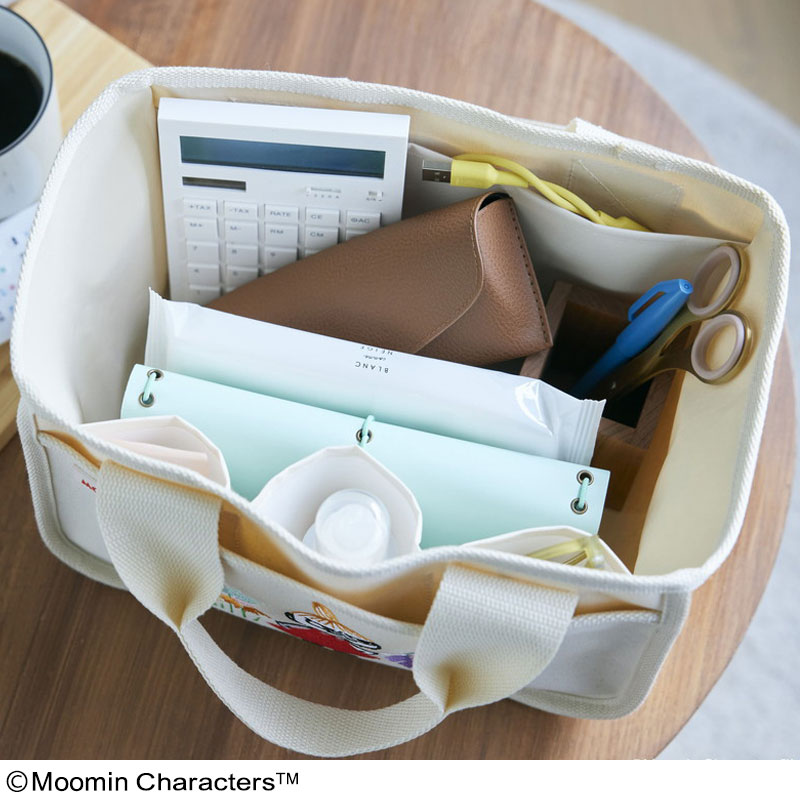 リモコンやコード類などリビングの小物をひとまとめにしたり、コスメや文具を整理して収納したり、缶詰やビンなど食品の保管にも◎。お弁当や水筒を入れてランチバッグやおでかけ時のバッグ、車内の荷物をまとめて置くのにもおすすめ! 日常のさまざまなシーンで大活躍の万能トートバッグです。