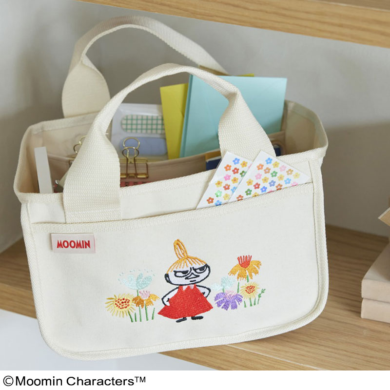 リトルミイの刺しゅうが豪華で大人かわいい収納トートができました。