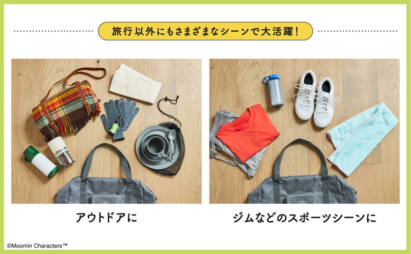 約25Lも収納できる大容量、なのに折りたたむと持ち歩きにも便利なコンパクトサイズに! 旅行用のバッグとしてはもちろん、アウトドアやジムなどのスポーツシーンに、マザーズバッグや荷物が多いときのサブバッグにとマルチに活躍してくれる頼もしいアイテム。折りたたんで普段使いのバッグに入れておけば、荷物が増えても安心です。背面にはループが付いていて、キャリーケースにセットして移動したいときに便利です。