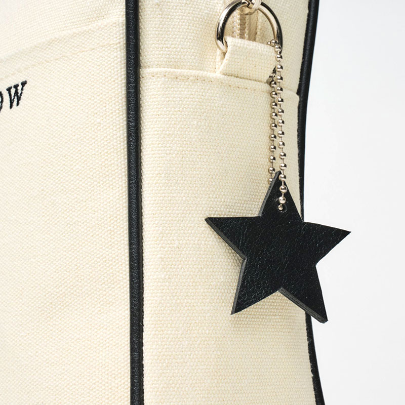 デザインのアクセントになる、フェイクレザーの星のチャームつき