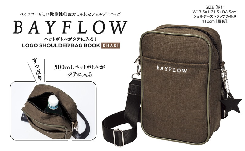 宝島チャンネルで『BAYFLOW ペットボトルがタテに入る! LOGO SHOULDER BAG BOOK KHAKI』を購入すると先着順で「星形カラビナ」をプレゼント!