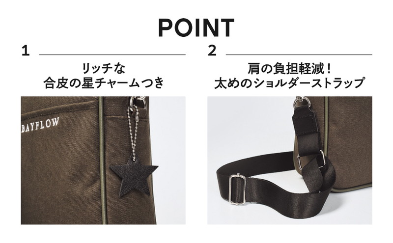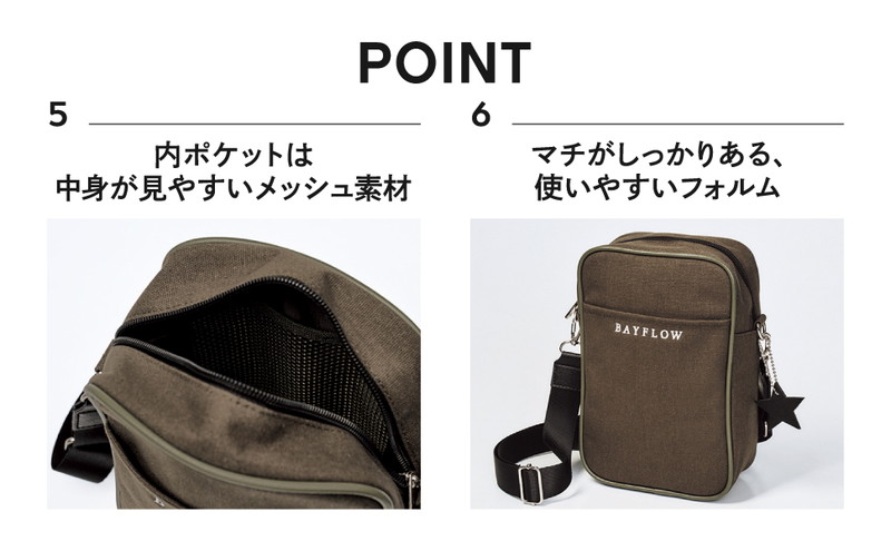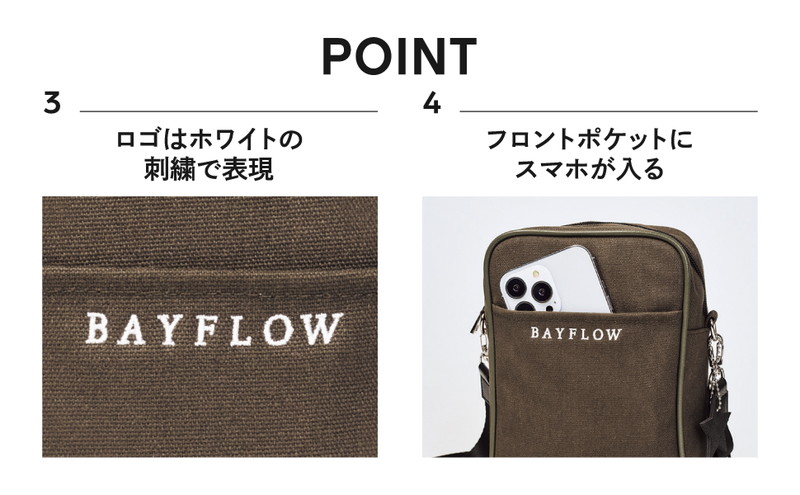 BAYFLOWらしいデザインと、使いやすいサイズ感にこだわったショルダーバッグです。