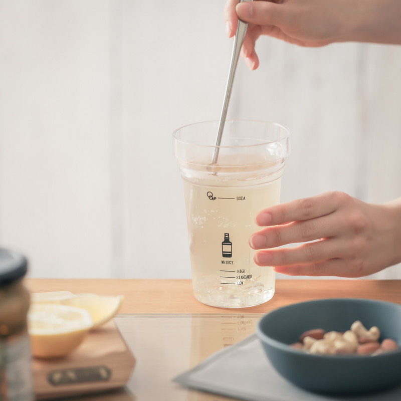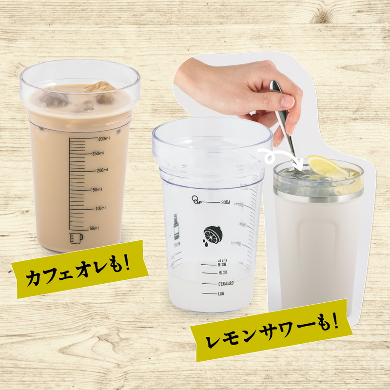 お好みの割合でドリンクが作れるメモリカップと、