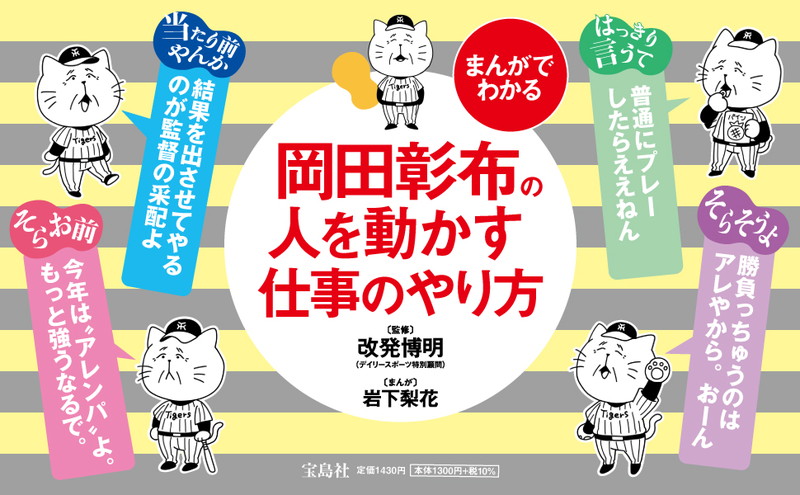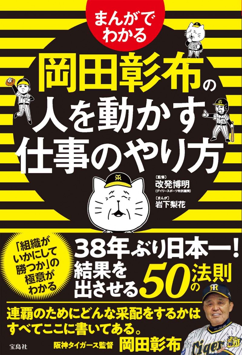 2023年の阪神タイガースを振り返りながら、岡田監督ならではの人を動かす仕事のコツを50の法則にまとめ、人物像や岡田語録とともに、まんがを交えて解説する。