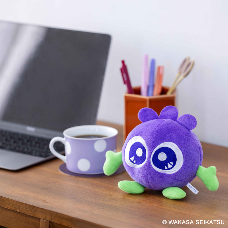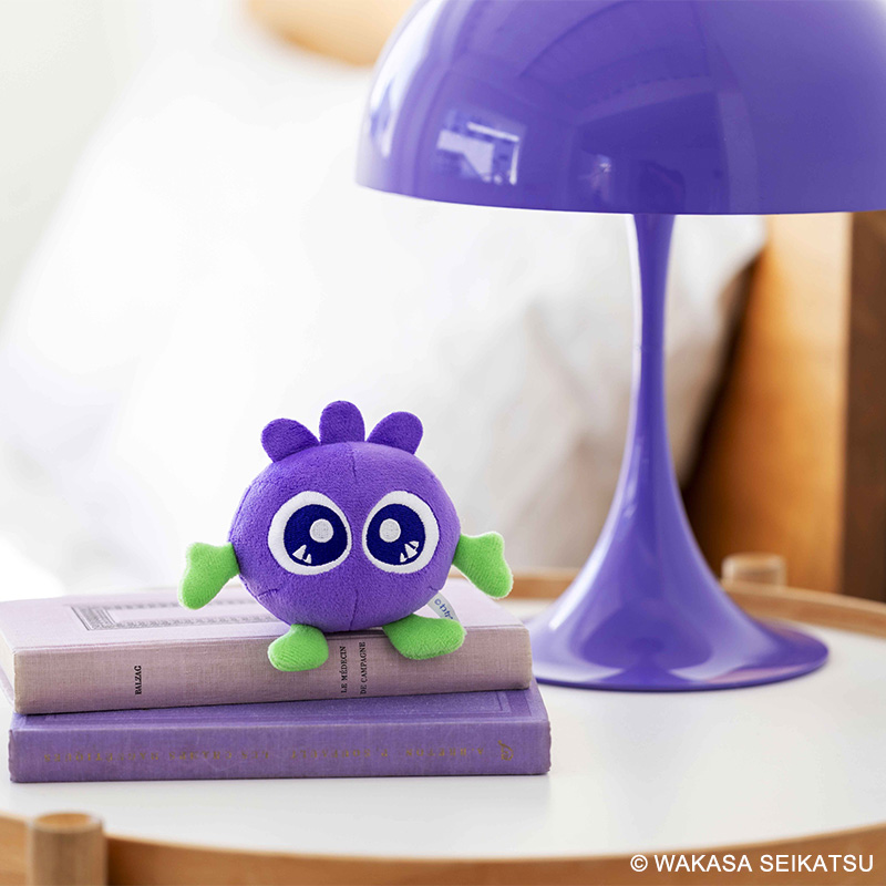 ブルーベリーサプリメント『ブルーベリーアイ』でおなじみ、わかさ生活のマスコットキャラクター「ブルブルくん」のぬいぐるみキーホルダーが登場!