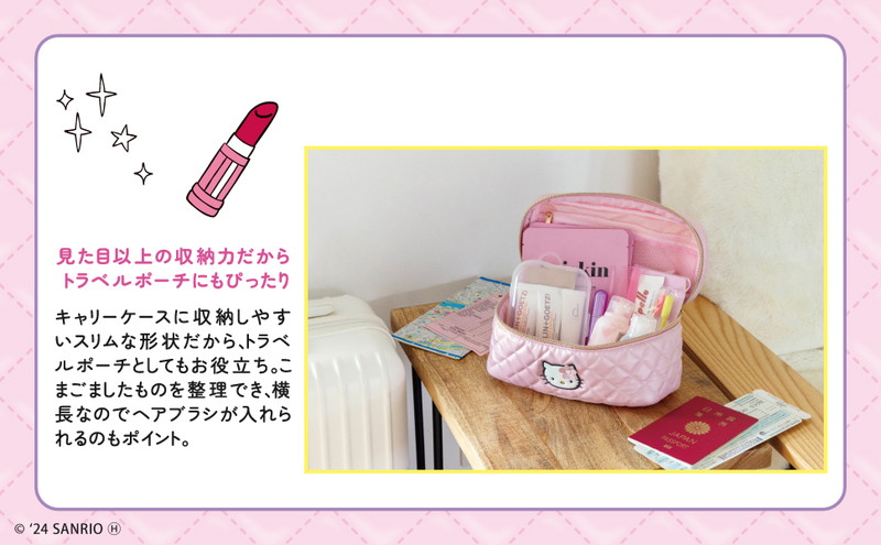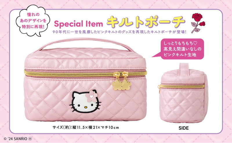 本誌限定のスペシャルアイテムは、90年代に一世を風靡したピンクキルトのグッズを再現したキルトポーチ!