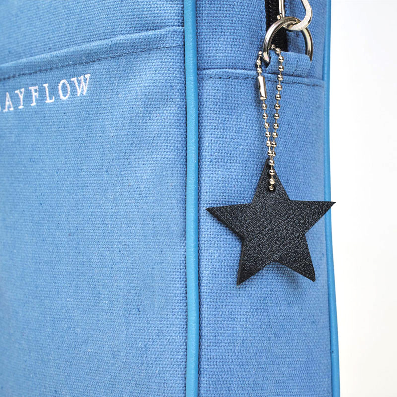 デザインのアクセントになる、フェイクレザーの星のチャームつき