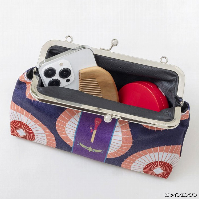 スペシャルアイテムは薬売りの持ち物である天秤、退魔の剣、今回の映画のキーポイントである傘をちりめん生地にプリントしたがま口ポーチです。