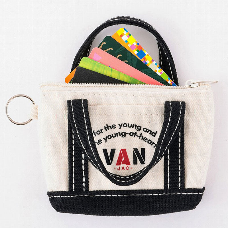 小銭や鍵などの小物、カードや名刺まで入るミニポーチは、遊び心たっぷりなトートバッグデザイン。