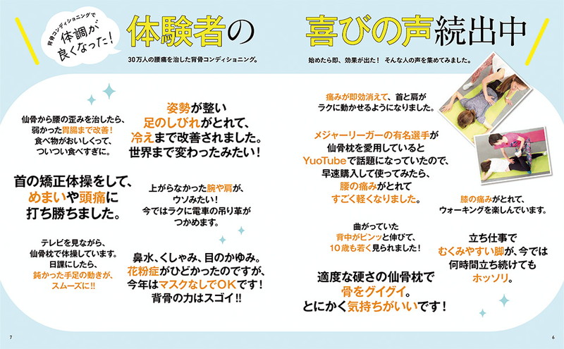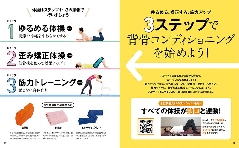 寝転がるだけで腰がラクになる! とTVで話題。あの有名スポーツ選手も愛用する「仙骨枕」がついたムックが完全版で登場します。「ゆるめる」「矯正する」「筋力アップ」の3ステップで、誰でも無理なくらくらく腰痛体操ができます。30万人の腰痛を治した「背骨コンディショニング」が、付録のオリジナルグッズ「仙骨枕」ですぐに始められる一冊。さらに今回は、この本だけのオリジナル体操動画がスマホで見られる特典つき。