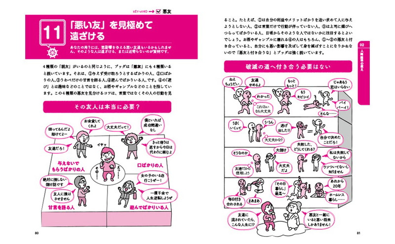 「幸福のカギを握るのはお金ではない」「全員と仲良くしなくていい」「相手ではなく、自分のために生きる」など、人生のさまざまな悩みに答えてくれるブッダの教え。