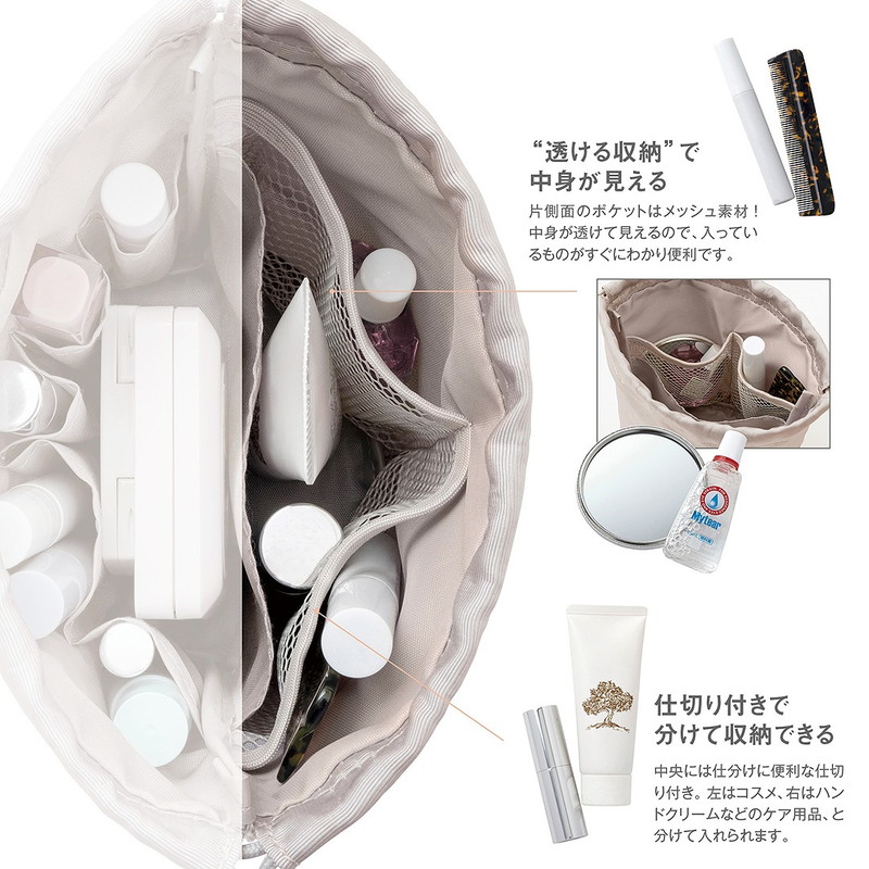 仕切りが付いており、例えば「メイクのお直し用品」と