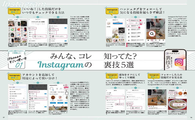 「iPhoneでも消しゴムマジックができる!」「LINEの公式アカウントからのメッセージを全部まとめて既読にするワザ」「仕事・勉強に集中できるホーム画面の切り替えワザ」など、思わず試してみたくなるiPhoneの使い方をたっぷりお届けします。Apple好きには絶対刺さる、Apple Watch、AirPodsなどの活用術も!