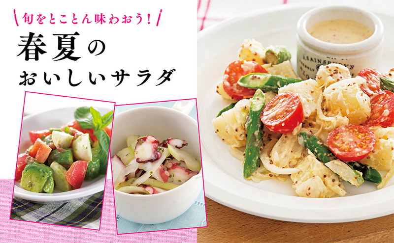 「作りおきサラダ」やテーブルの主役にもなる「ごちそうサラダ」など、ヘルシーなのに満足感たっぷりのレシピばかり。