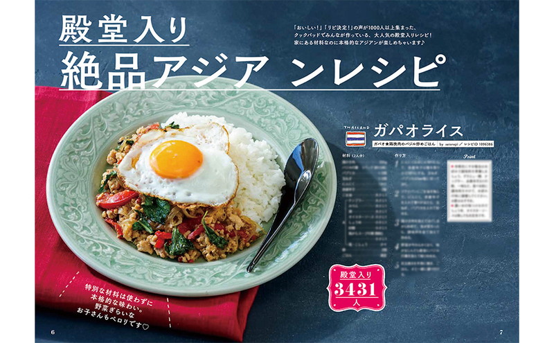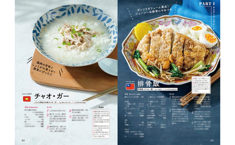 クックパッドに掲載されたレシピの中から、おうちで簡単に再現できる人気のアジア(中国、台湾、シンガポール、ベトナム、タイ、インドネシア、インド)ごはんレシピを紹介。味は本格的、でもスーパーで買える材料で完成する優秀レシピを厳選します。巻頭では大ブームの「ライスペーパー」の人気レシピを掲載。失敗しないライスペーパーの使い方から、目からウロコのアイデアレシピまで。自宅にいながら旅気分を満喫できる一冊です。