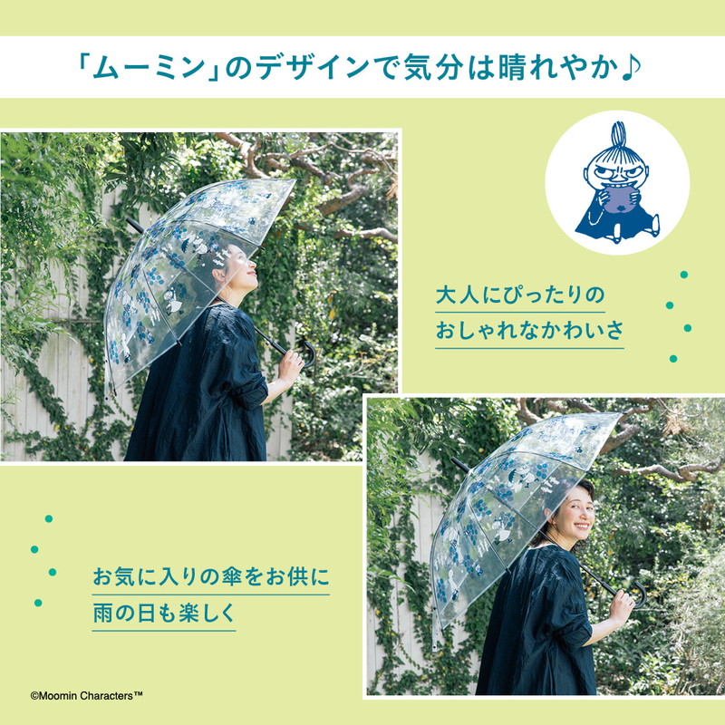 外に出るのが億劫な雨の日も「ムーミン」デザインで気分は晴れやか♪ コーデの一部として大人かわいい華やかさもプラスしてくれる傘です。
