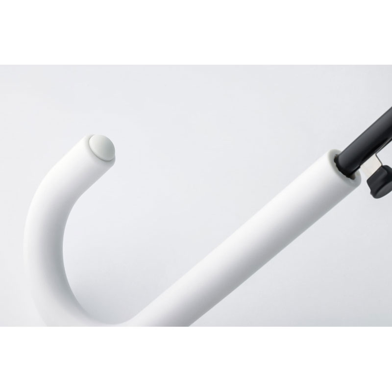 ワンタッチ式で扱いやすく、ハンドルには滑り止めが付いているのでテーブルなどに引っ掛けても落ちにくいのも嬉しいポイント。さらに日本洋傘振興協議会(JUPA)が定める品質基準をクリアした丈夫な骨組みを採用しているため、安心して長く愛用できます。