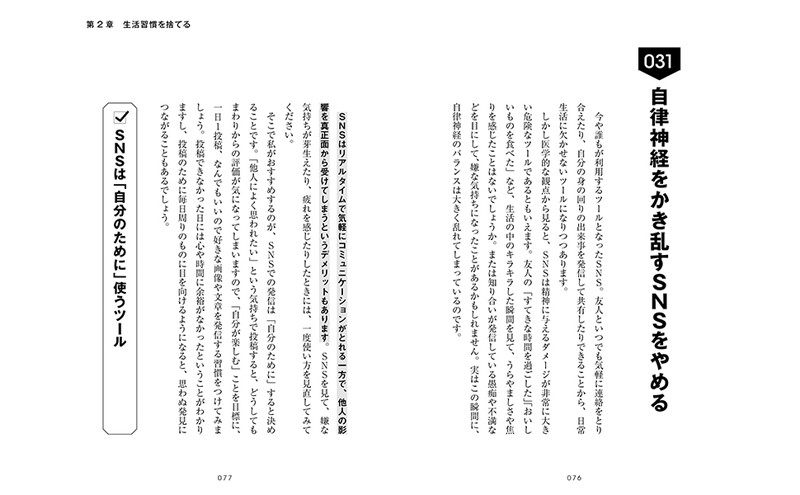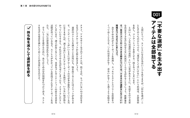 モノ、生活習慣、人間関係を捨てることで自律神経が整います。服、靴、本、書類、バッグ、財布、紙焼き写真、ビデオテープ、DVDといった身の回りのモノをいかに「捨てる」べきかに加え、悩みの根本的な原因となる対人関係をいかに「捨てる」「整理する」べきかについても解説。