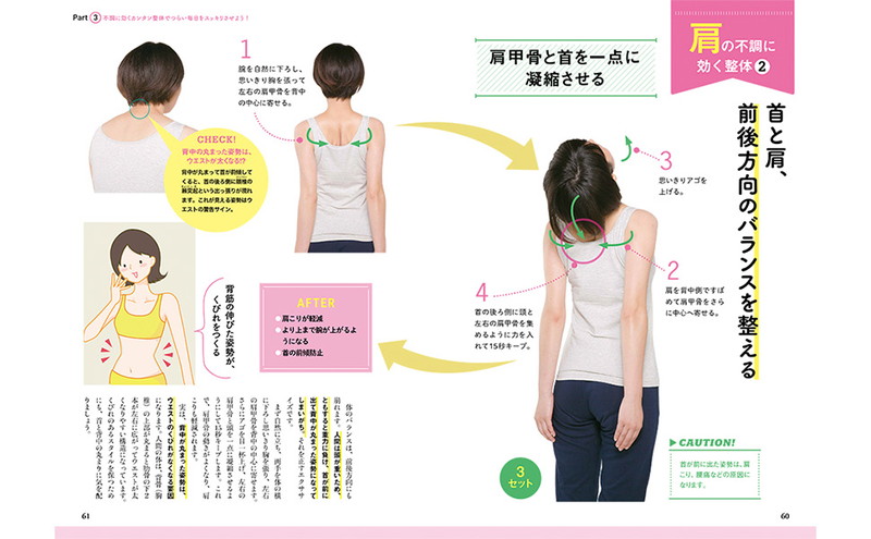 「腰痛」「肩こり」「首痛」「股関節痛」「生理痛」など、日常で多くの人が抱えるお悩みを解消する一冊です。不調の一番の原因と考えられているのが体の“ずれ”や“ゆがみ”。どういった時に“ずれ”や“ゆがみ”が引き起こされるのか、“正しい姿勢を保つコツ”を整体学の視点から解説。簡単だけどよく効く自力整体を36パターン紹介します。驚くほど不調が解消されます。