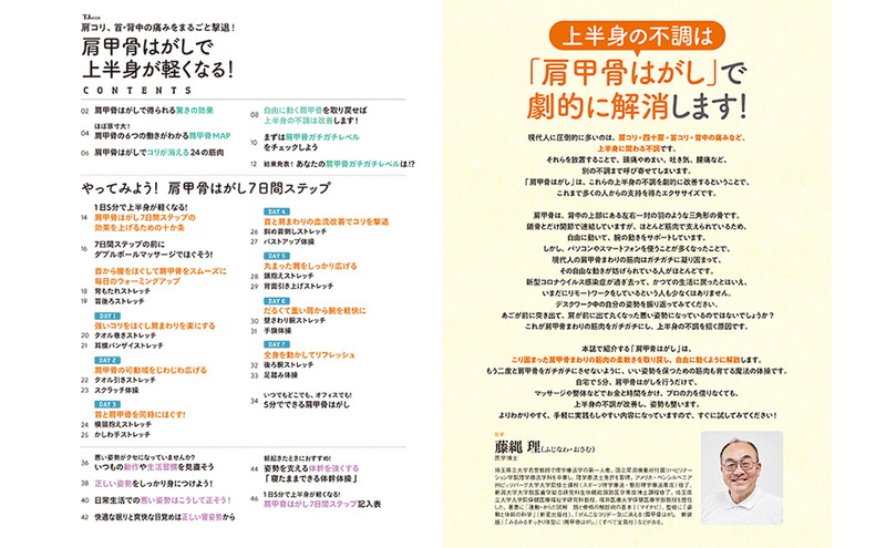 肩コリ・四十肩・首コリ・背中の痛みなど、さまざまな上半身のコリと痛みが消えると大人気の「肩甲骨はがし」。動きにくくなった肩甲骨をストレッチや体操でほぐせば、丸まった背筋も伸びてダイエットにも効果あり。1日5分でできる最新の手法を、初めての方でもサクッとできて続けられるように、わかりやすくご紹介します。