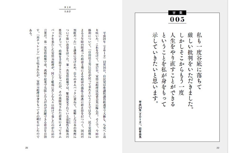 2022年7月、凶弾に倒れ非業の死を遂げた安倍元総理は数々の言葉を残している。安倍晋三ほど再チャレンジという言葉と実像が重なる人はおらず、64年ぶりとなった総理再登板は多くの人に希望を与えた。日本人に国家の理念とビジョンを発信し続けた希代の宰相の100の言葉を解説。