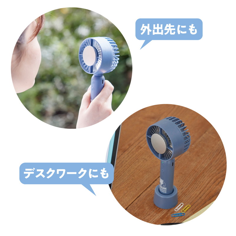 ハンズフリーで使える専用スタンド付きで卓上用ファンとしても◎