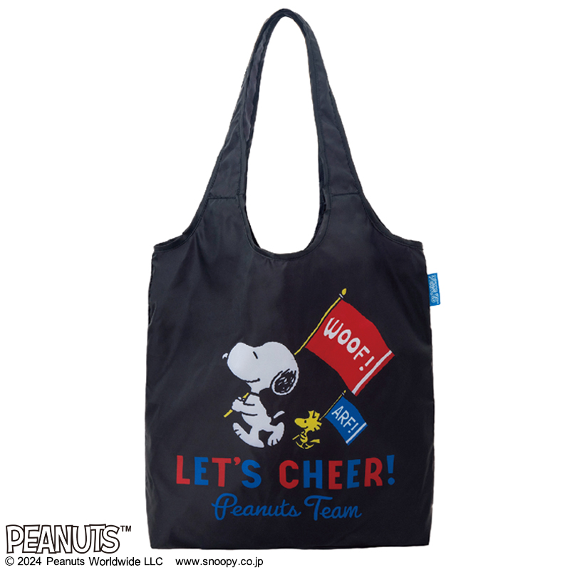 スヌーピーたちがプリントされたエコバッグ。内側に収納用の巾着がついているので、普段はクシュクシュッとしまっておける頼れるアイテム!