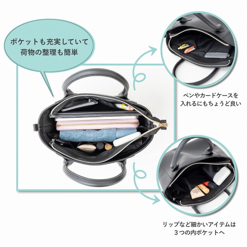 しっかりしたマチと7つのポケットで収納力もバツグン! どんなコーデにもしっくりくるオトナにぴったりの2WAYショルダーバッグです。