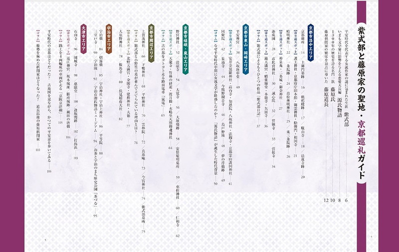 紫式部・藤原家ゆかりの地、全81スポットを写真・地図付きで解説。これを読んで京都を巡れば、紫式部と藤原道長が生きた平安京の世界を体感できます。さらに聖地巡礼の際にオススメの寄り道スポットも掲載! 京都観光のおともにぴったりの一冊です。