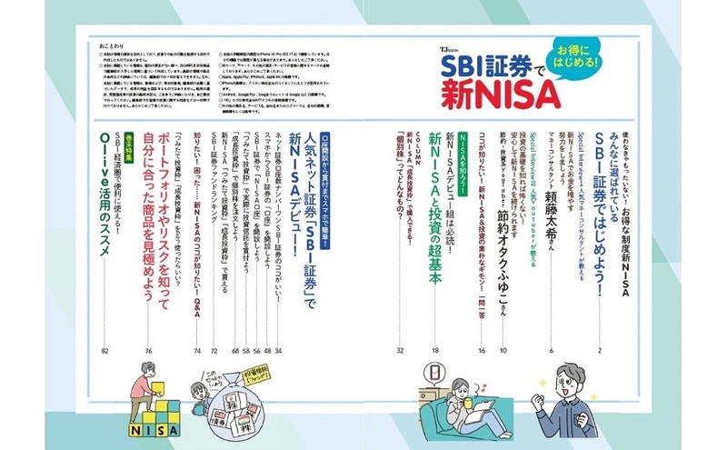2024年「新NISA」がついにスタート。月額100円からできて、運用益の税金ゼロ枠が拡大、非課税期間がずっと続くなど、さらにお得な制度に! この本では、みんなに選ばれている人気ネット証券「SBI証券」でNISA口座を開設して、商品を購入するまでの全手順をていねいに解説! スマホひとつで誰でも簡単にはじめられます。巻末では、SBI証券で新NISAをやるならぜひ活用したい話題のモバイル金融サービス「Olive」を徹底解説!