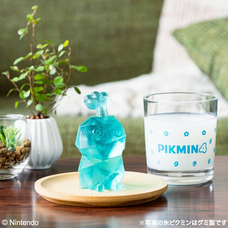 製氷器で作った氷をコップに入れると、氷ピクミンがひょっこり顔を出しているような仕上がりになります。