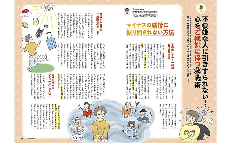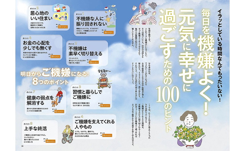 いつ会ってもご機嫌な人、なぜかいつも不機嫌な人、いませんか? 気分が晴れない、イライラするときに不機嫌のまま過ごすなんて、人生がもったいない! 自分にご褒美をあげたり、好きなことをして嫌な気持ちはスパッと切り離して、心穏やかに過ごすほうがよっぽど有意義です。「好きなものを食べる」「体を動かす」「気が置けない人とのおしゃべり」「旅に出る」「しっかりと睡眠を取る」など、自分のご機嫌の取り方を紹介。また、機嫌が悪い人と接して、せっかくご機嫌に過ごしているのにトバッチリを受けたときの回復法や距離の取り方も紹介します。これからの人生をご機嫌で過ごすために、済ませておきたいお金や相続のこと、終活についても解説します。