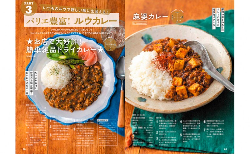 レシピサイト・クックパッドから、人気の高いカレーレシピを厳選して紹介。家庭で人気の王道カレーはもちろん、旬のアジアカレー、本格派のスパイスカレーなど88レシピが大集結。巻頭では、印度カリー子さんによる最新スパイスカレーレシピも紹介。さらに、翌日が楽しみになるリメイク術や市販のルゥを使った実用的なアイデアも多数掲載。作ってみたい、挑戦してみたい絶品レシピが必ず見つかるはず。