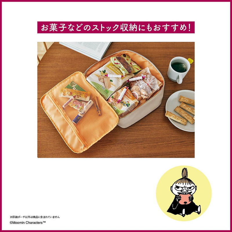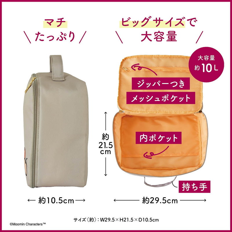 シックなグレージュカラーにリトルミイのデザインが大人かわいい、ビッグサイズのポーチが登場です。ゴールドのニョロニョロの引き手もポイント♪