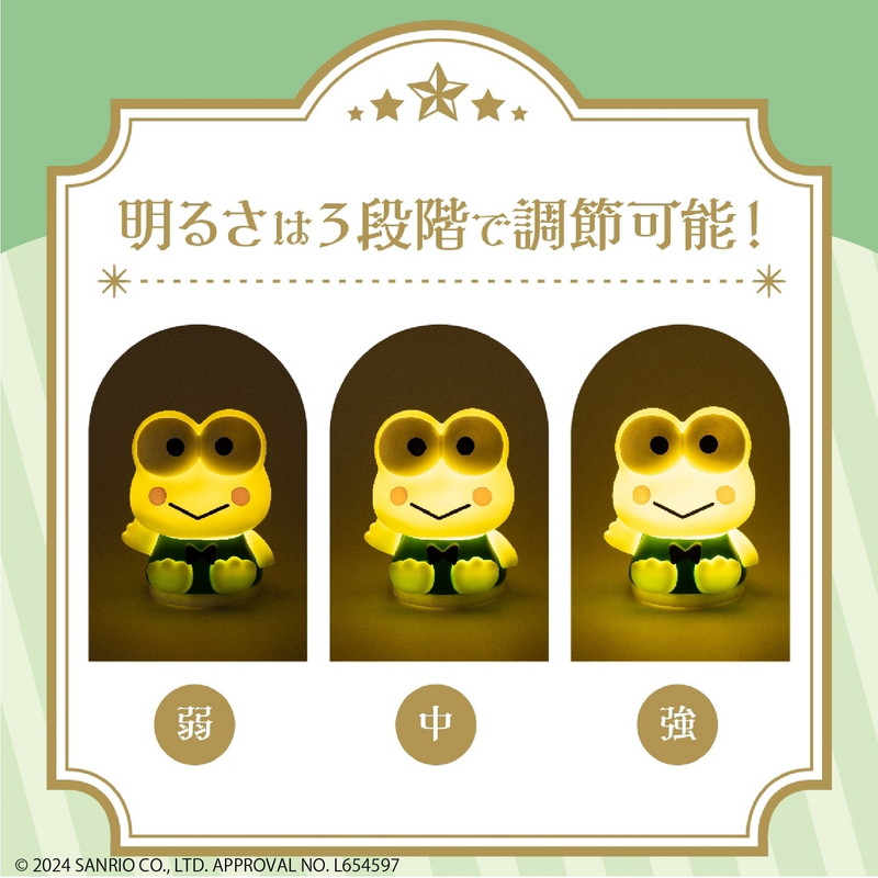 サンリオの人気者であり、「はぴだんぶい」のメンバーでもあるバッドばつ丸、けろけろけろっぴ、タキシードサムが揃ってかわいいお部屋ライトに!