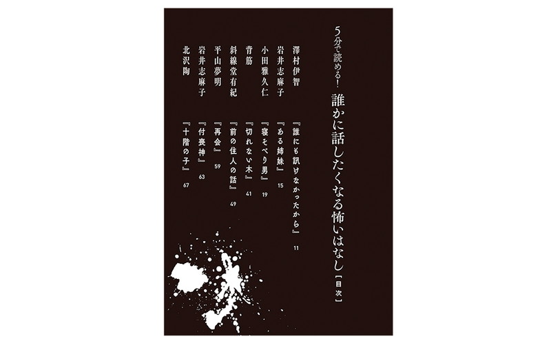 岡崎琢磨さん、尾八原ジュージさん、北沢陶さん、林由美子さんら人気作家が集う、実話怪談系ショートショート集です。