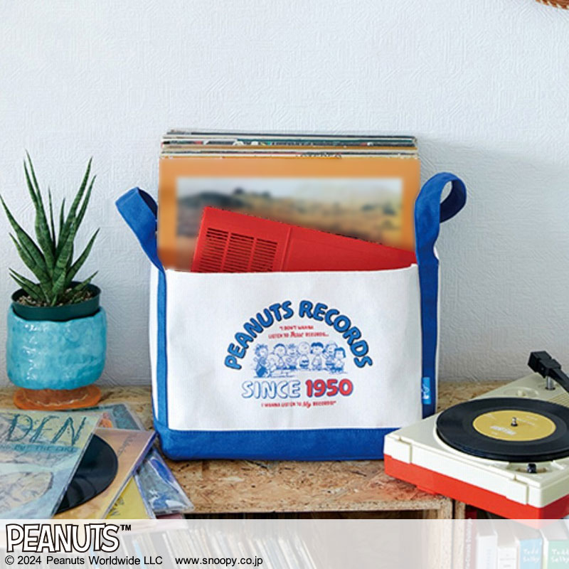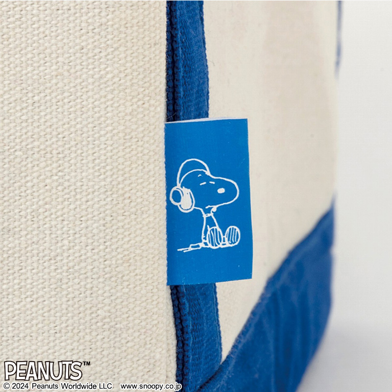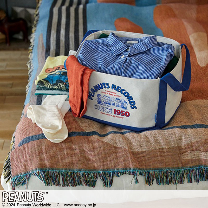 ナチュラルな雰囲気に、楽しそうなPEANUTSの仲間たちのプリントが映える大きなインテリアトート。