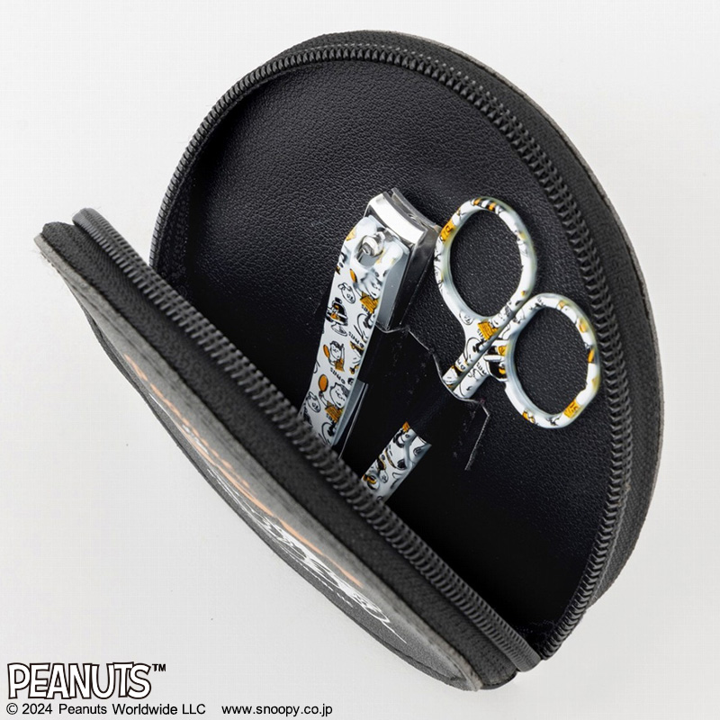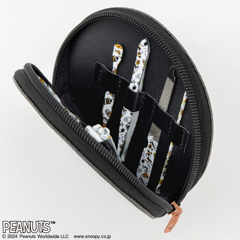 クールなブラックのポーチと、チャーミングなPEANUTSの仲間たちがデザインされたツール6点セットです。コンパクトなので旅行にも最適です。